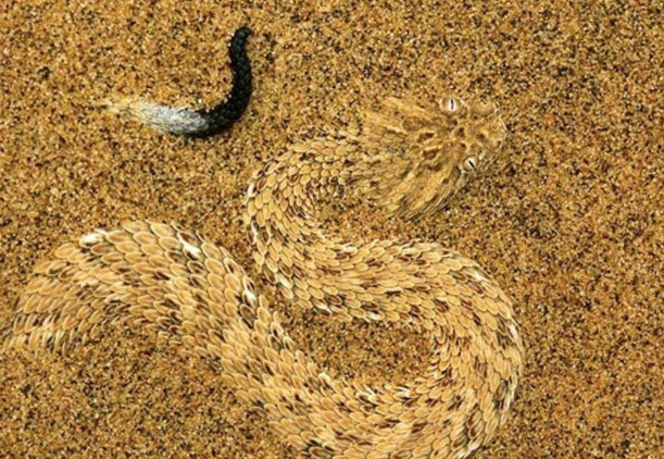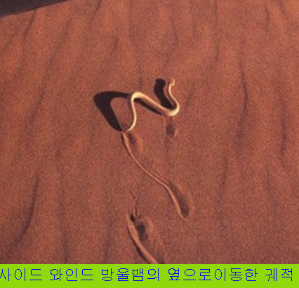 방울뱀이 모래 위를 지나가면 [긁힌 자국]처럼 흔적이 남습니다.