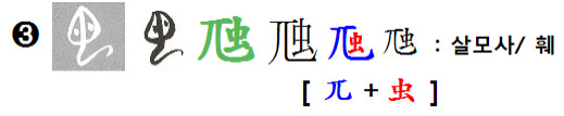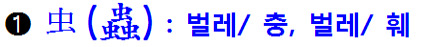 곤충은 ➊ 虫(蟲):충 ➋ 風:풍 ➌ 虺:훼 3가지로 분류하여