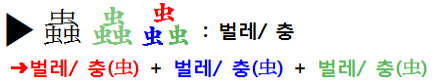 ➜먼저 벌레/충(➊虫(蟲):충)부터 들어갑니다.