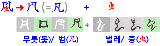 벌레(虫)가 바람(風)을 타고 다니고, 돛(凡)도 바람(風)의 힘을