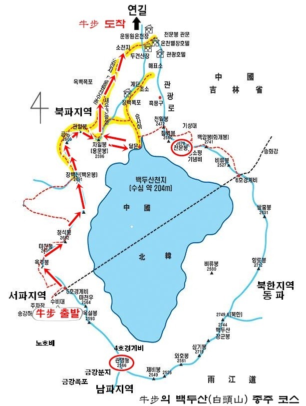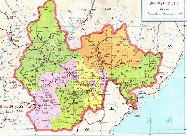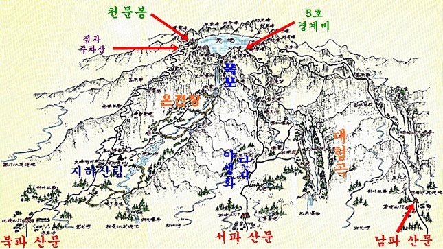 북한지도 모음 - 백두산 천지 지도 (북중 천지 분할선) - 세계식량계획 접근금지 구역 - 연변 조선족 자치주- 발해 5경 위치-함북 길주군 풍계리 핵실험장 위치
