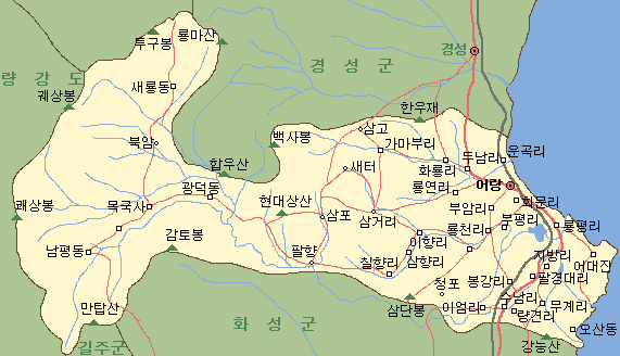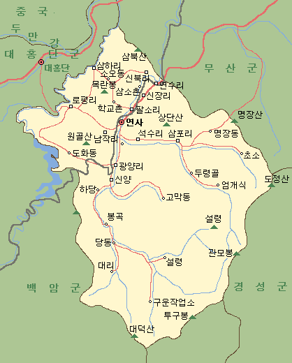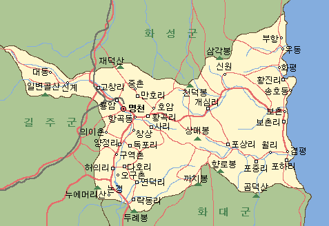 함북 길주군 지도 - 풍계리 (핵실험장 위치)