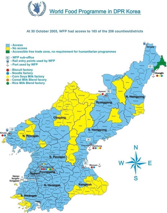 아래 지도에서 노란색 부분이 세계식량계획 요원들의 접근이
