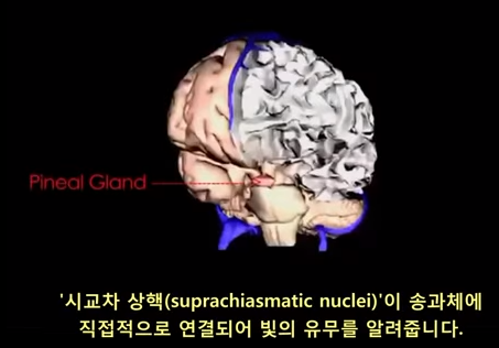 송과체는 빛에 민감하여 멜라토닌이 밤에만 생성되는데