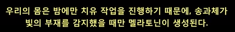 건강을 악화시킬 수 있다. 특히, 송과체에서 생성되는 멜라토닌 부족으로