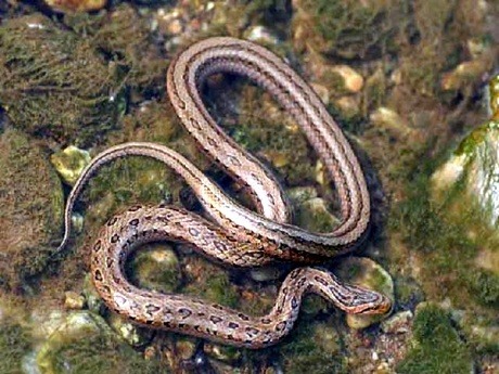 무독성,줄뱀으로도 불리우며 몸이 가늘고 동작이 민첩하고 가벼워 풀잎 타기와 몸 숨기기 명수이다.