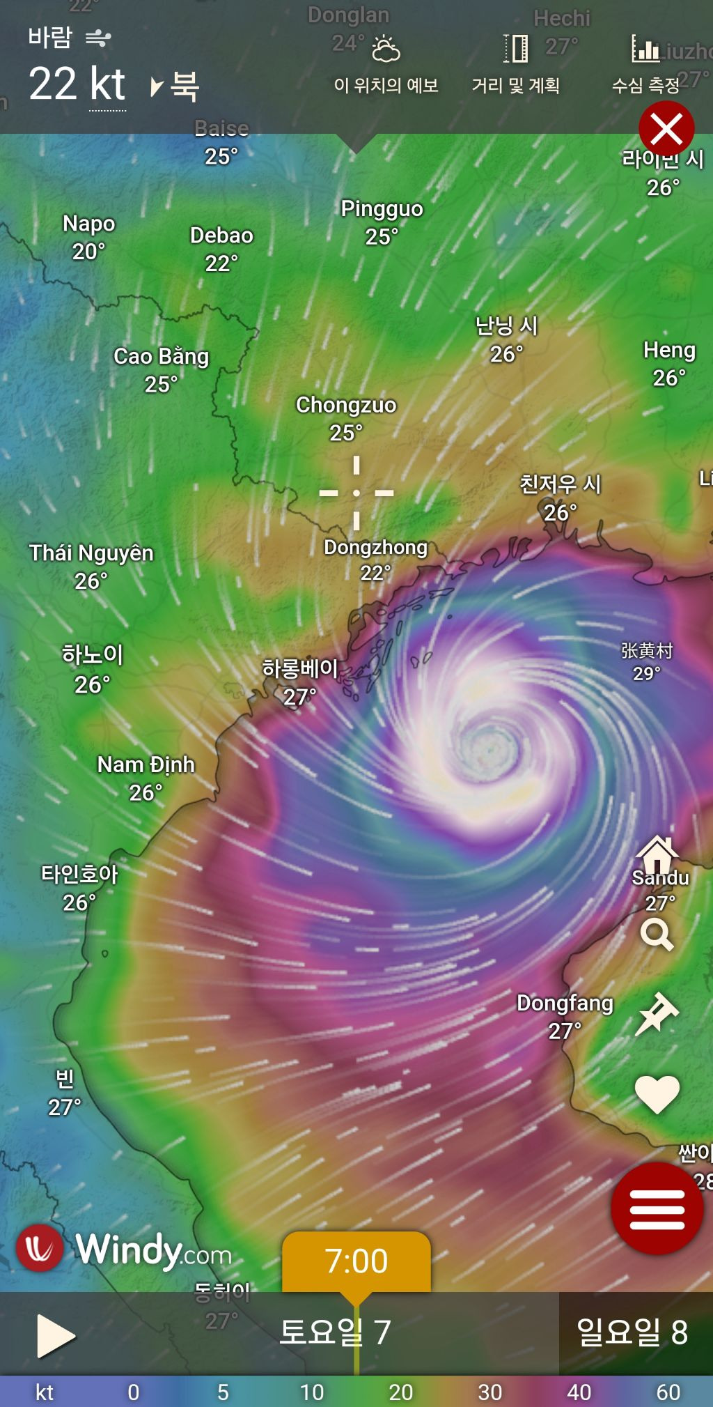 태풍 야기가 하롱베이를 거쳐 하노이 사파로 따라 오네요..현재 사빠는 비가 많이 내려요..