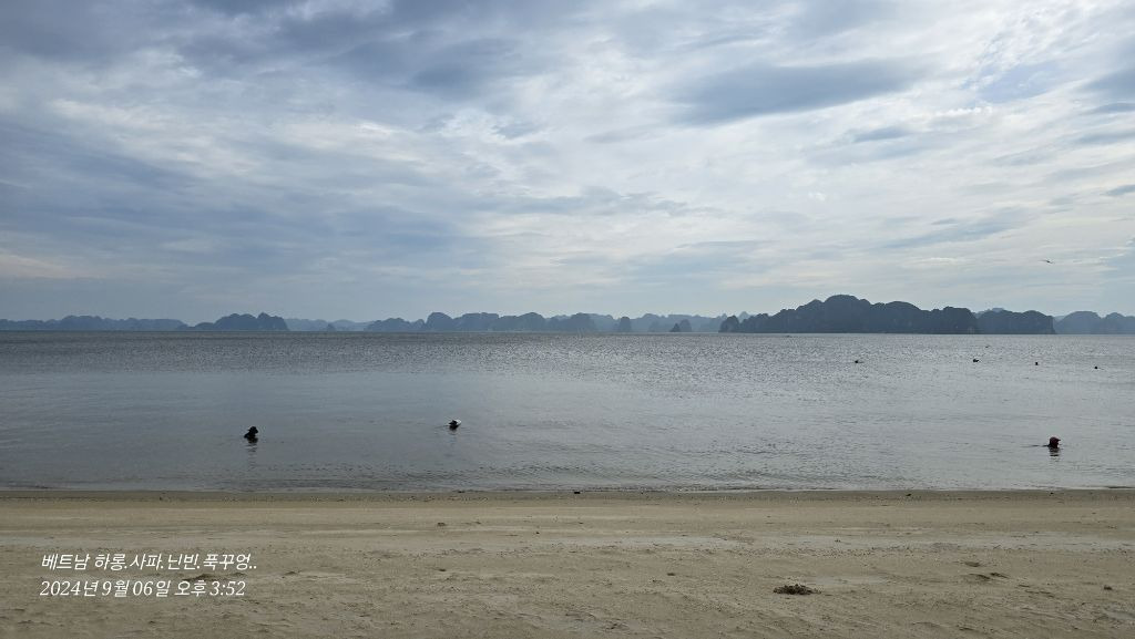 호텔앞 풍경..해변가 앞이라 아름다워요. 루프탑에서 와인 한잔에 재즈음악에 취해서 젊은 날의 향수에 젖어 볼려는 꿈은 날라 갔어요..현지 에이전트의 말에 따르면 길과 다리와 공항리 폐쇄 되면 안되니 저녁에라도 하노이 올것을 권해서 저희 팀은 2분을 제외하고 야간버스로 하노이을 거쳐 사파로 이동합니다..