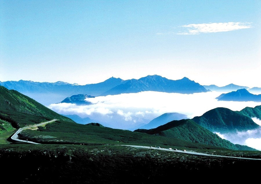 일본에서 가장 높은 드라이브 코스로 알려진 노리쿠라다케 정상으로 향하는 길은