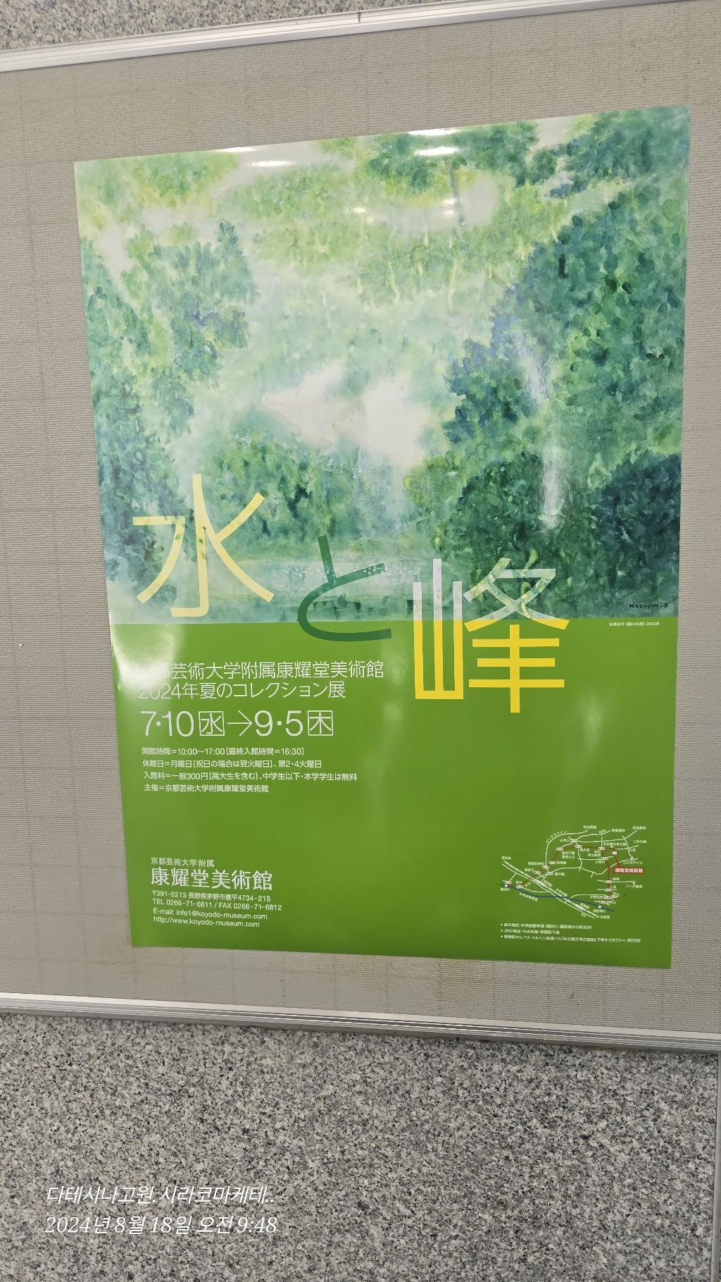 <기본 일정> 제1일차.. 고슈가도(甲州街道) 다이가하라쥬쿠( 臺ヶ原宿) 산책 (양조장-七賢-1750년 창업/노포 화과자-全精軒-1910창업) 나카무라 키스헤링뮤지엄 또는 주변 산책 후지조망 고원길 드라이브 [1,500m 시라카바호반 온천호텔-연박] 제2일차.. 2,000m 비너스라인 따라 호숫길,초원길 트레킹(A/B) 2,000m 고원 우스쿠시가하라 미술관 또는 고원길 산책 [1,500m 시라카바호반 온천호텔-연박] 제3일차.. 2,000m 고원 시라코마 이끼숲길&호숫길 트레킹 최다의 음이온(15,000개/cc)을 내뿜는 요코야협곡 트레킹 [2,000m고원 작은 리조트-트윈 또는 펜션-싱글] 제4일차.. 미쓰이숲 산책 산토리위스키 정원 밀레전문관을 품은 야마나시현립미술관(실버 무료) 고후성에서 바라보는 후지산 풍경 [후에후시 온천호텔-트윈&싱글 프리] 제5일차.. 야마나시 허브정원(산책&온천족욕)? 제일 큰 가와구치코 호반길 산책 너른 여름 꽃정원 다테고하마 해변 포토제닉 후지산둘레길 트레킹(호숫길+숲길따라..2시간/3시간) [모토스호반 P온천호텔] 제6일차.. 후지산둘레길 트레킹(호숫길+숲길따라..2시간/3시간) 다누키호반 둘레길(1~2시간) FUJI MILK LAND 시라이토폭포 (平成棚田) <4시30분 경 공항 도착/6시 출발~8시 도착> *위 일정은 현지 진행 상황 및 날씨에 따라 조정될 수 있습니다~ *** 여행 기획 & 진행 : 아슬란(010-5518-8499) ▣ 기타 사항 ▣ ▶ 진행 중 안전사고 발생시 모든 책임은 개인에게 있으며 본 카페의 카페지기와 운영자 및 진행 대장은 민, 형사상 일체의 책임이 없슴을 알려드리오니 개인 안전에 유의하시기 바랍니다. ▶ 여행 중 개인별로 비용 차이가 있는 각종 입장료와 항공,선박 등 탈거리들에 대한 경로할인,지역할인 등 각종 할인은 개인별로 적용치 않기에 회비 일부환불 등은 없습니다. ▶ 항공 예약 여행인 경우 예약 후 취소 시 항공사별로 항공 취소료가 발생할 수 있습니다. ▣ 환불 기준 ▣ (항공취소료 별도) <출발 91일 이전 취소 시> 전액 환불(단,항공취소료 공제) <90일~61일 이전 취소 시> 여행회비의 85% 환불 <60일~30일 이전 취소 시> 여행회비의 70% 환불 <30일~15일 이전 취소 시> 여행회비의 60% 환불 <15일~ 5일 이전 취소 시> 여행회비의 50% 환불 <5일 전~3일이전 취소 시> 여행회비의 30% 환불 <3일 전~1일전 취소 시> 여행회비의 10% 환불 <3일 전~1일전 취소 시> 여행회비의 10% 환불 |