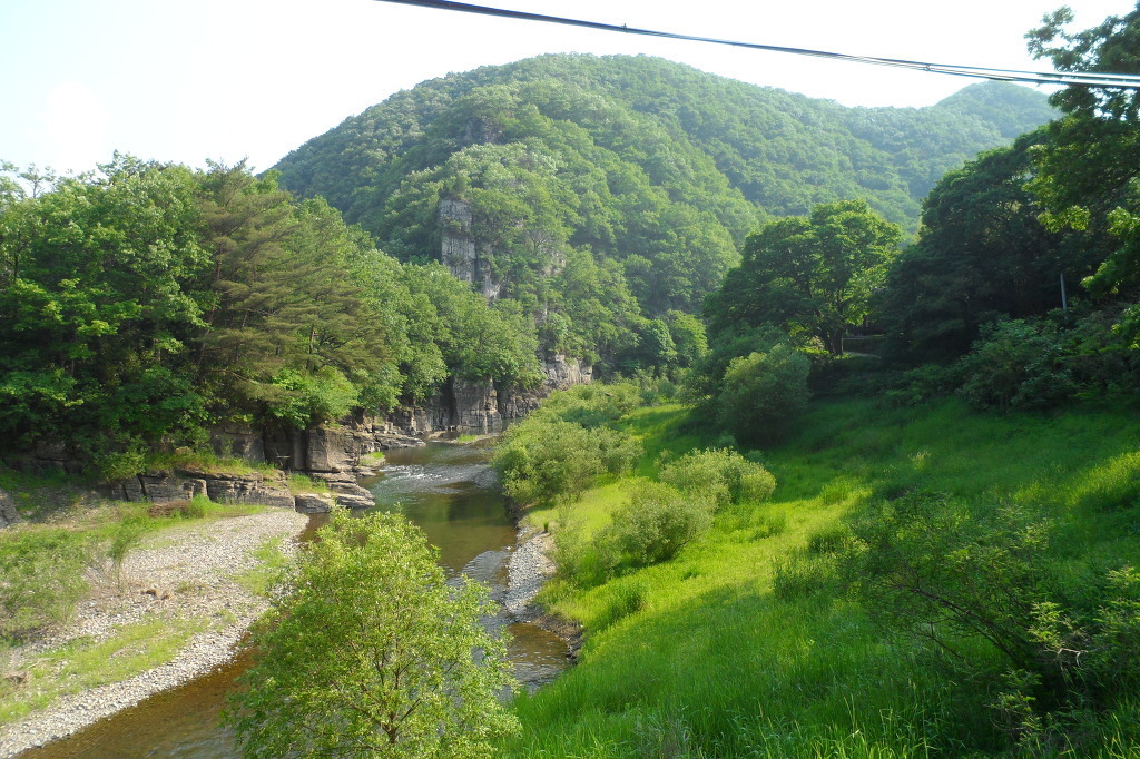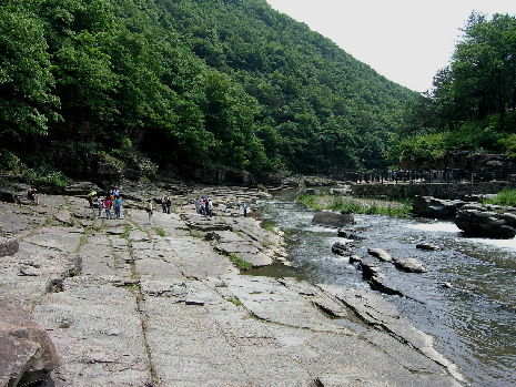 반구산(265m)의 끝자락이 뻗어내려와 우뚝 멎은 곳에 테라스처럼 층층이 쌓인 점판암으로 형성된 기암절벽이 솟아있고, 돌틈새에 뿌리를 내린 소나무와 그아래를 굽이쳐 흐르는 대곡천(大谷川)의 맑은 물이 절묘하게 뒤섞여 한폭의 진경산수화를 연출한다.