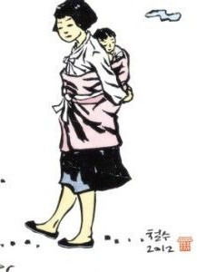 저녁을 굶은 아이와 젖이 마른 엄마가 부둥켜안은 둥근 모습처럼