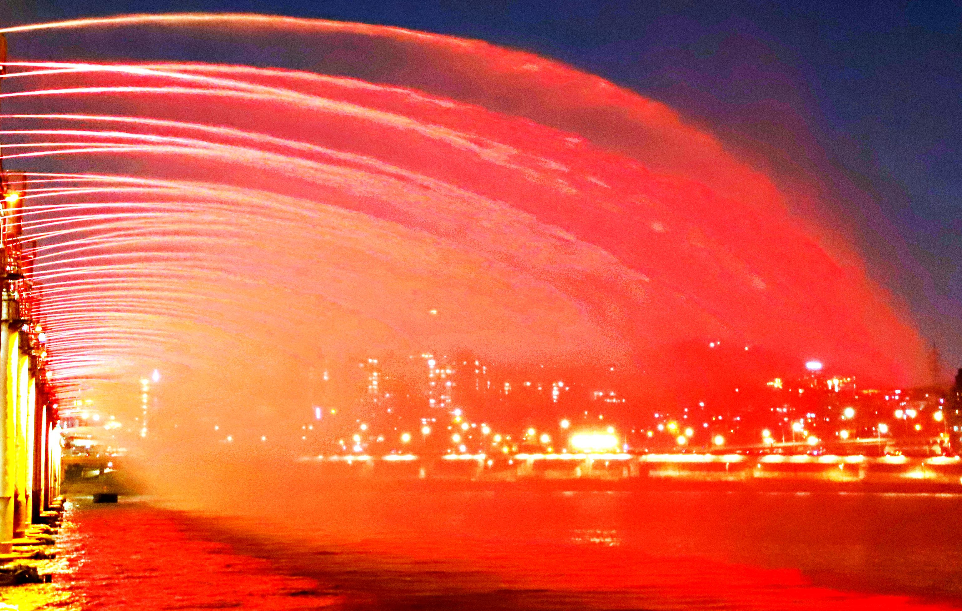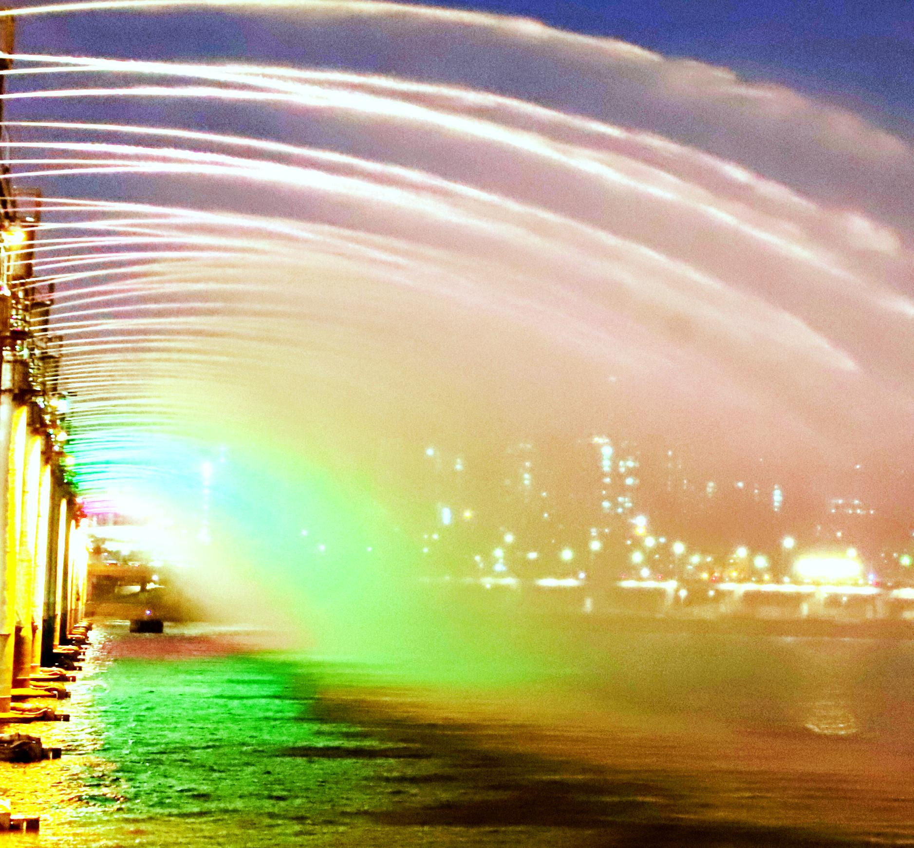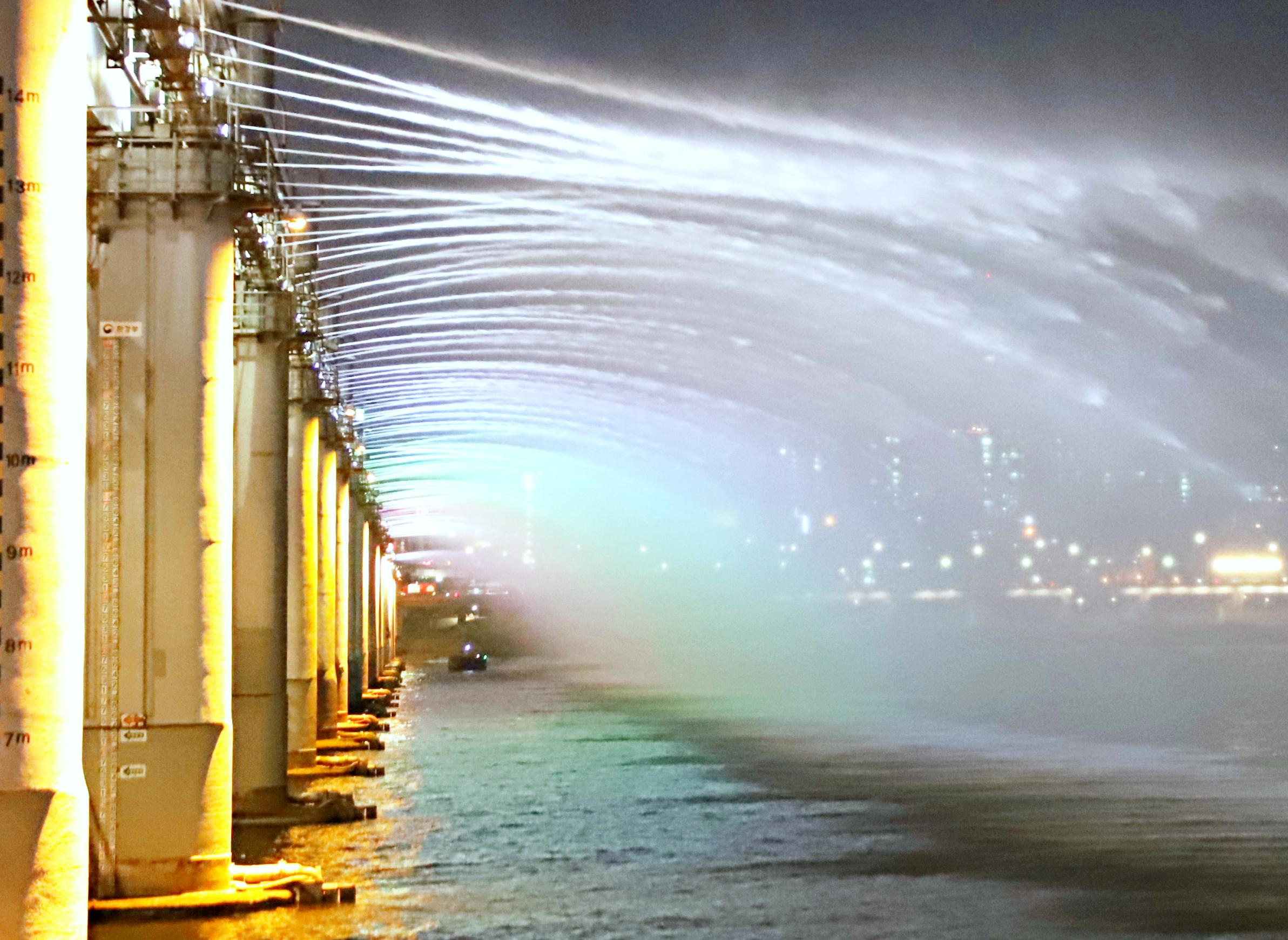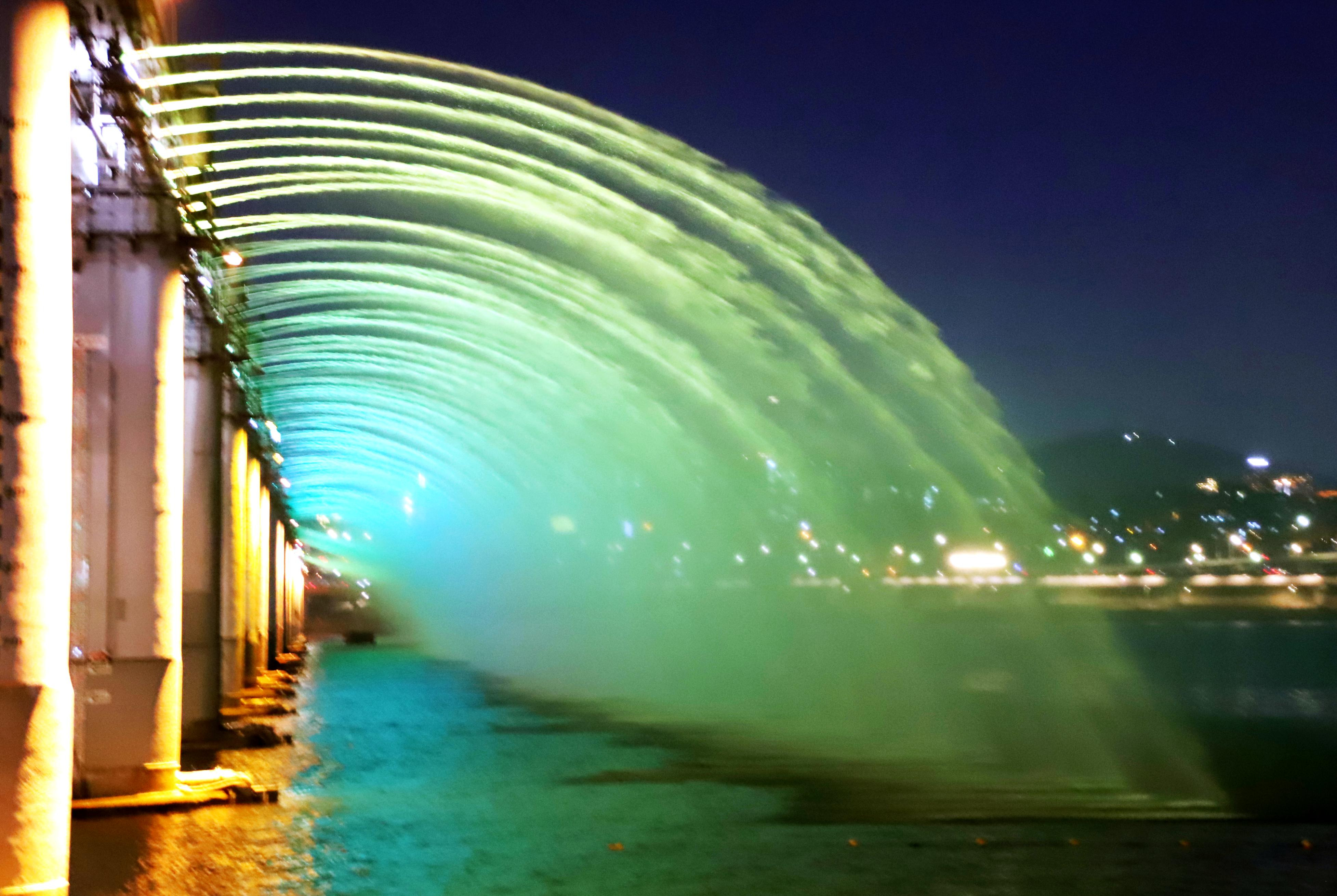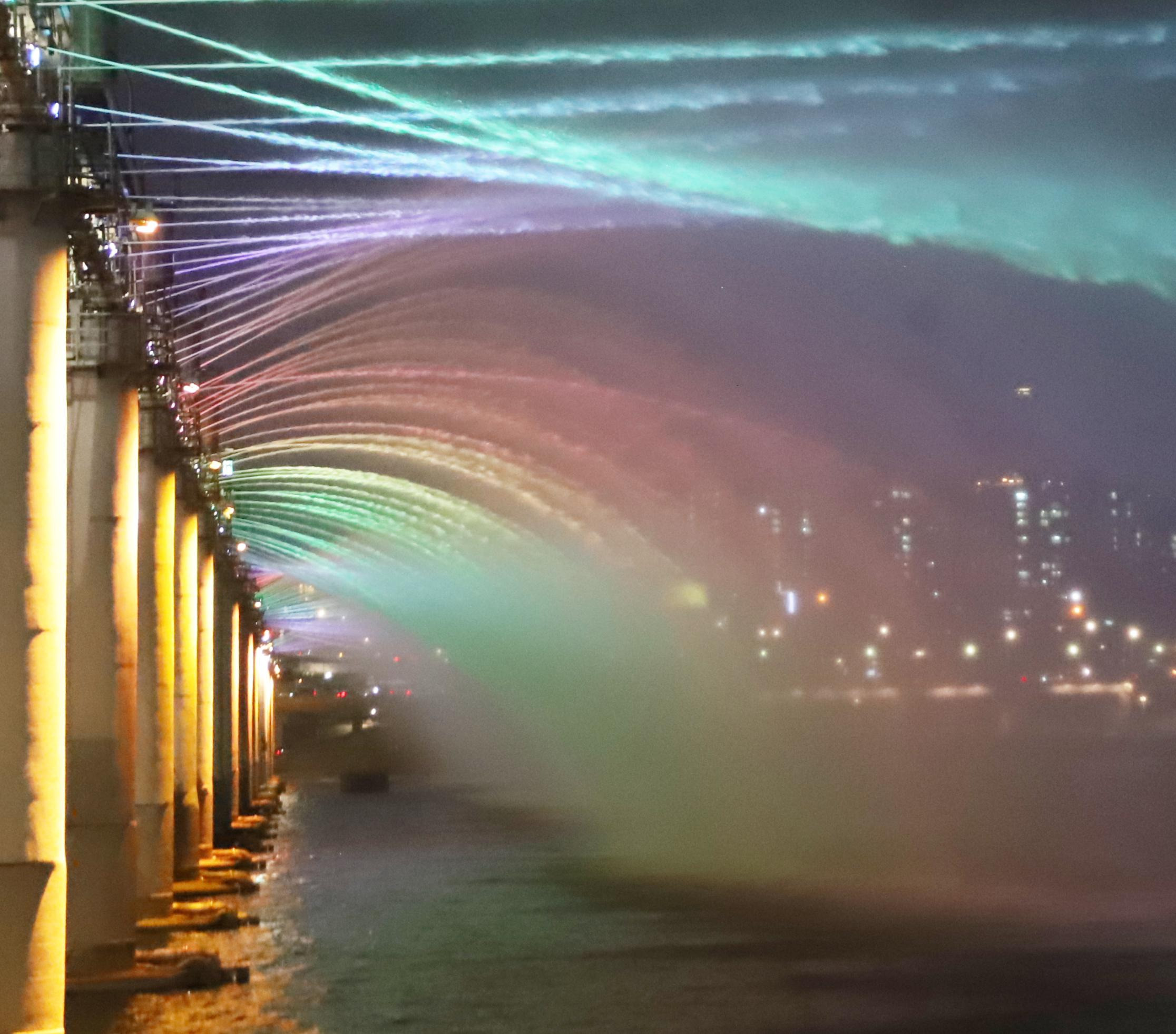 작성자좌청룡. 작성시간 26.03.22 위에 다리는 반포대교 밑에 다리는 잠수교 위에 반포대교 에서 분수 처럼 물을 뿌리면서 조명을 비취니까 오로라 처럼 보이는것 멋져부려요
