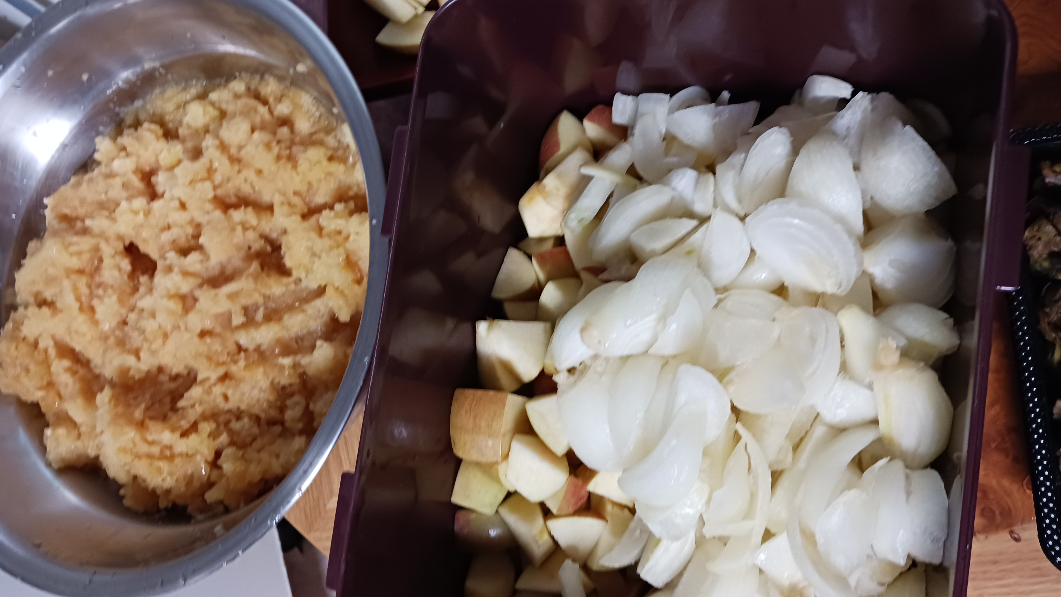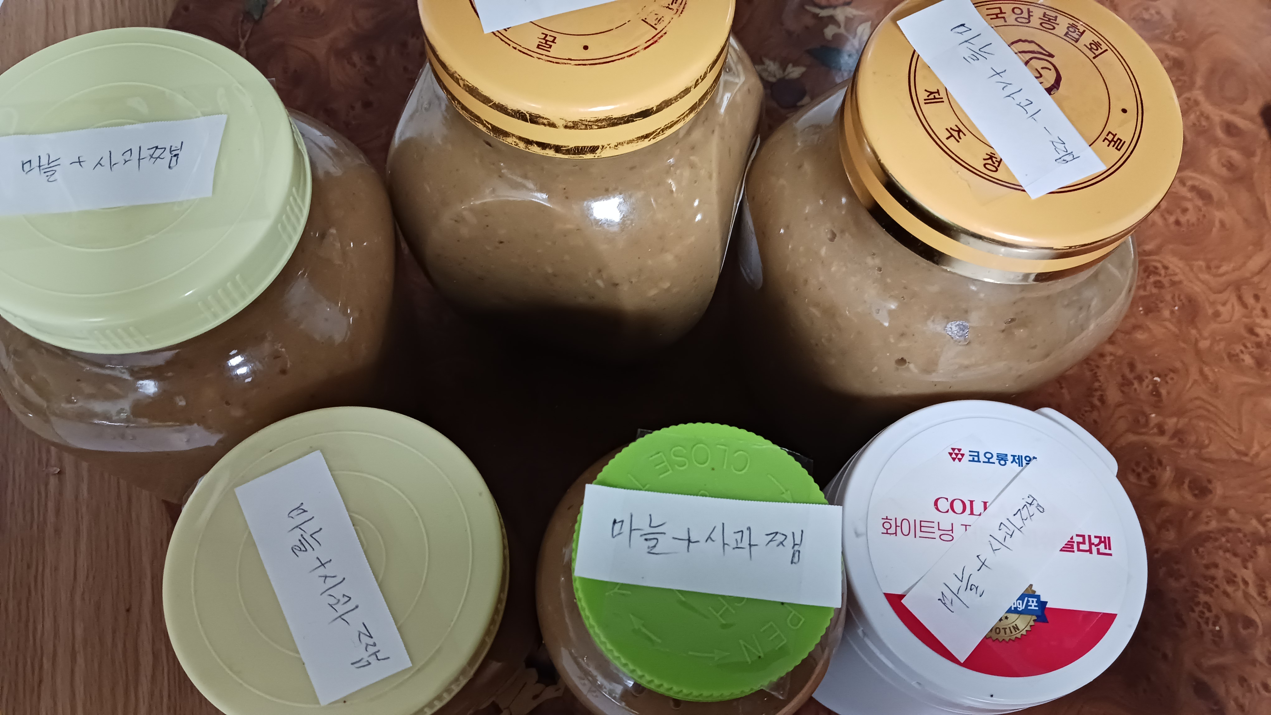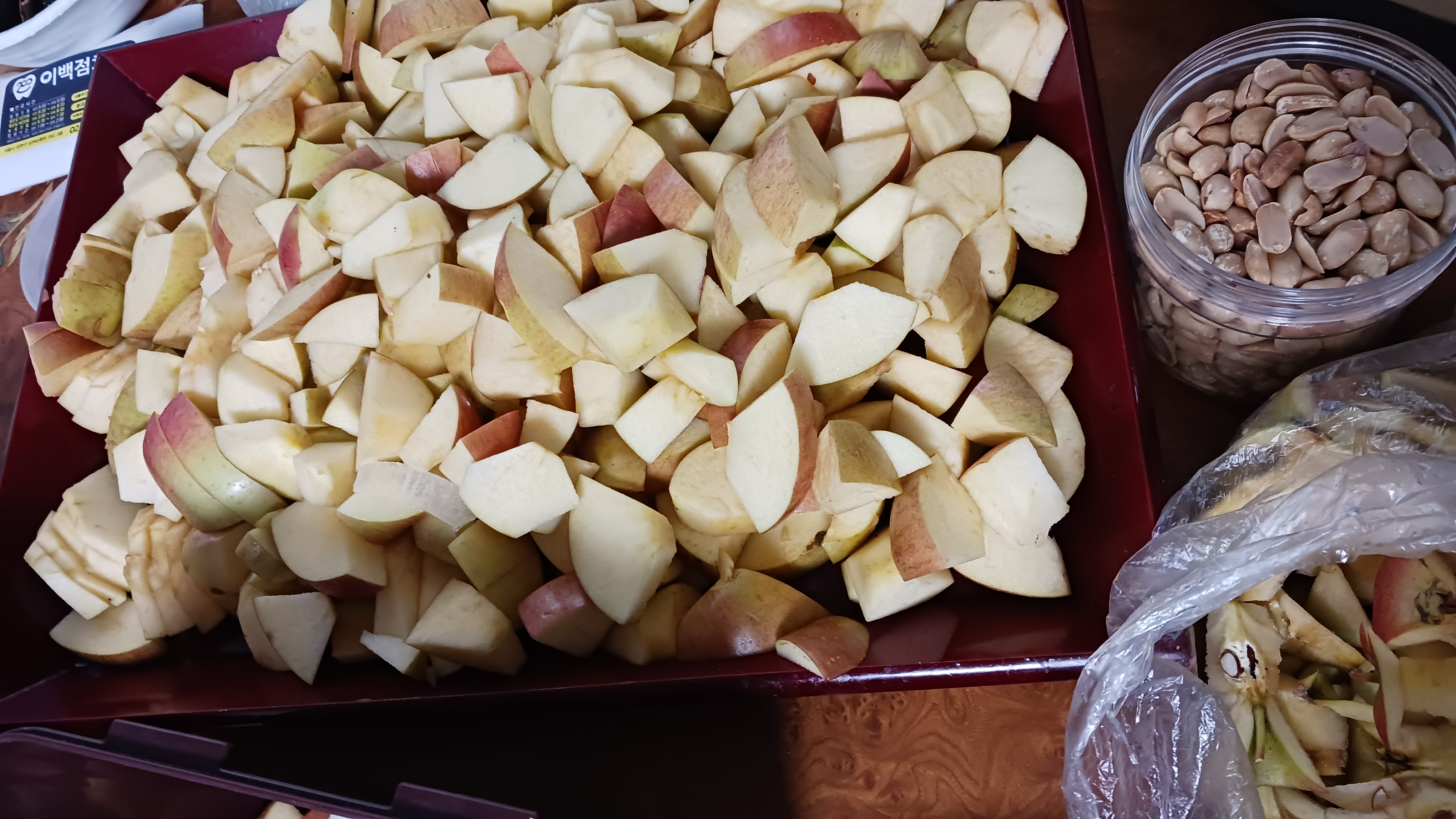 마늘 갈은거 사과. 땅콩도