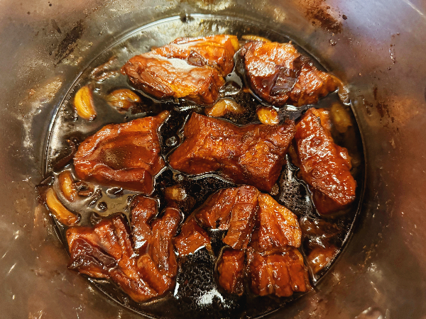 - 삶아낸 돼지고기를 넣고 30분간 조림.