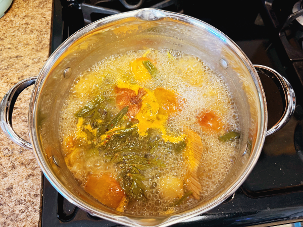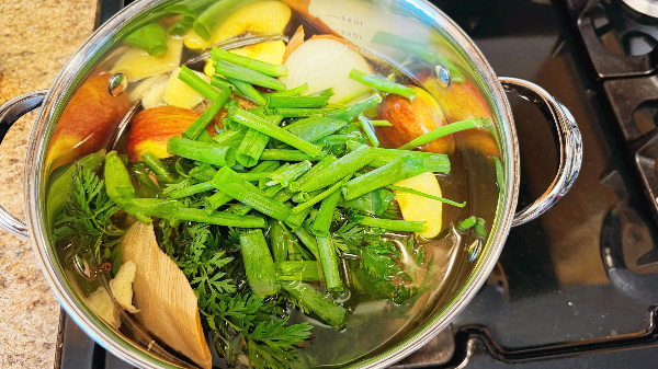 - 물 붓고 집에 있던 자투리 야채 다 집어넣고