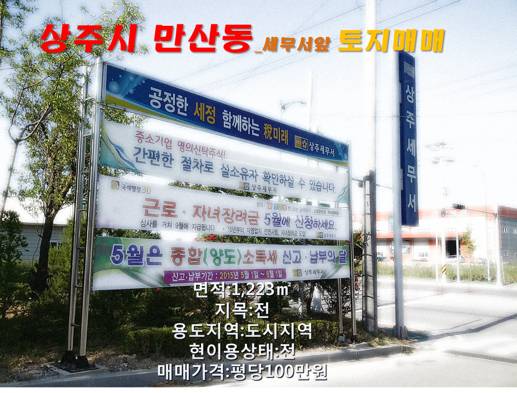 상주시 만산동 세무서앞 토지매매-상주세무서앞,상주부동산,상주부동산협회,상주토지,상주땅,상주문경부동산,문경랜드,문경토지,문경교차로,문경벼룩시장 작성자상무공인중개사무소|작성시간15.05.27|조회수381 목록 댓글 0 글자크기 작게가 글자크기 크게가 위치:상주시 만산동 상주세무서 앞 토지면적:1223㎡ 용도지역:자연녹지지역 지목:전 매매가격:/100만원 상주시 만산동,상주 만산동,상주땅,상주부동산협회 ,상주원룸박사 ,문경부동산 ,상주 아파트 ,보은부동산 ,상주교차로 ,김천부동산 ,상주토지 ,상주토지매매 ,경북상주부동산,상주시청,지엘건설,상주교차로,상주생활타임즈,상주 리베라움,상주부동산,희망랜드,점촌부동산,문경교차로,문경시청,문경벼룩시장,상주문경교차로,상주문경생활타임즈,상주시청,문경고용센타, 다음검색 현재 게시글 추가 기능 열기 북마크 공유하기 신고 센터로 신고 댓글 댓글 0 댓글쓰기 답글쓰기 댓글 리스트