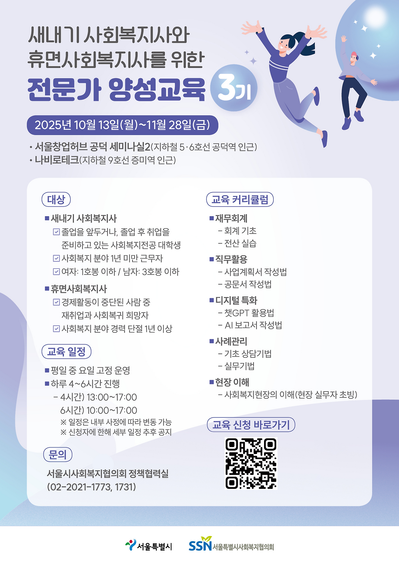 1) 교육명: 2025년 3기 새내기 사회복지사와 휴면사회복지사를 위한 전문가 양성 교육
