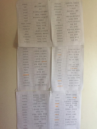 (선택과목 단권화 작업) (잘 안외워지는 영단어 식탁 옆쪽 벽에 붙인 것)