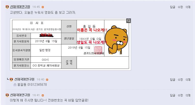 1. 15일 시험 응시표(사진도 OK)를 댓글로 인증해 주세요! (반드시 공개 댓글로)