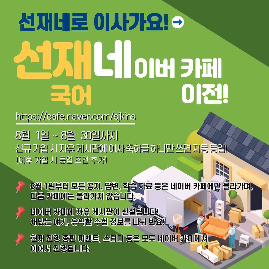 [선재네로 이사가요!] 8월 1일 선재국어 카페가 네이버로 이사갑니다!