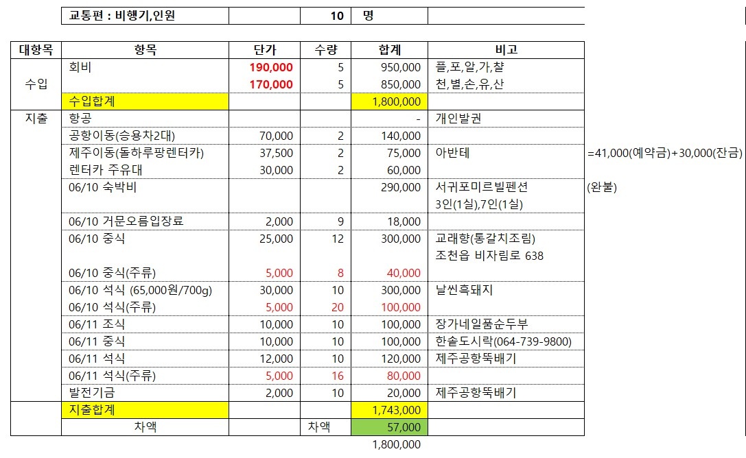 | 회 비 | 하나은행 152 18 362998 강남기 제주왕복 항공료를 제외한 나머지 경비는 신청회원 수 에 따라 탄력회비 적용 | 포 함 내 역 | 차량전세비(김포~안양 왕복) 전일정식사(5식) 숙박비+1식(40,000원) 버스투어비(제주 현지) 산죽회 발전기금 (1인 2,000원) 기 타 : | |