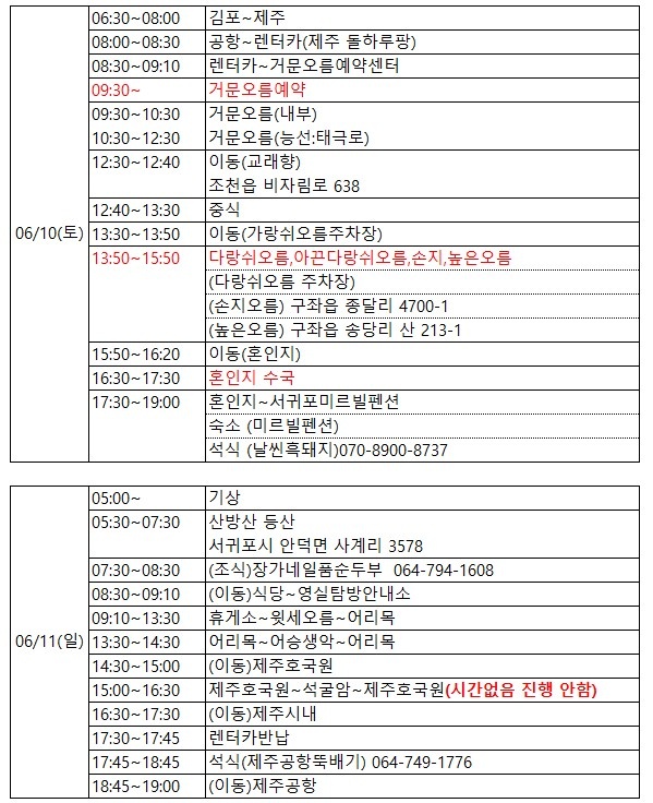 | 일 자 | 2023년 6월 10일~ 11일 ( 1박 2일) * 매월 3.6.9.12월 3개월마다 오름 진행하오며 22년 3월6월만 2째주 진행하고 9월부터는 3째주 진행함 (단 일정은 제주 현지 일정(철따라)에 따라 출발 주차는 항상 변경될 수 있으니 공지 확인 바랍니다) | |||