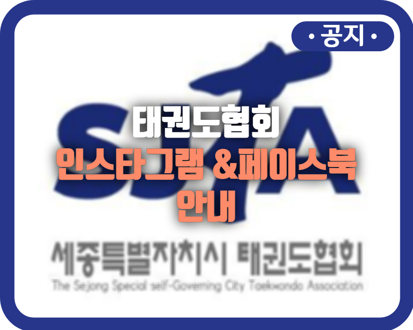 안녕하세요. 세종특별자치시태권도협회입니다. 저희 태권도협회 공식블로그와 페이스북 페이지 & 인스타그램을 개설하였으니 많은 관심 부탁드립니다.