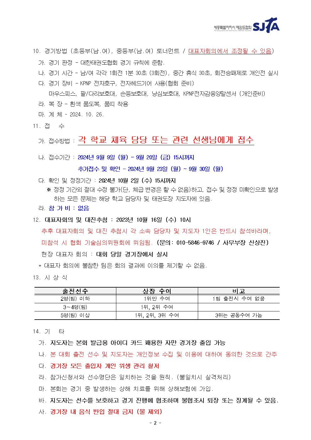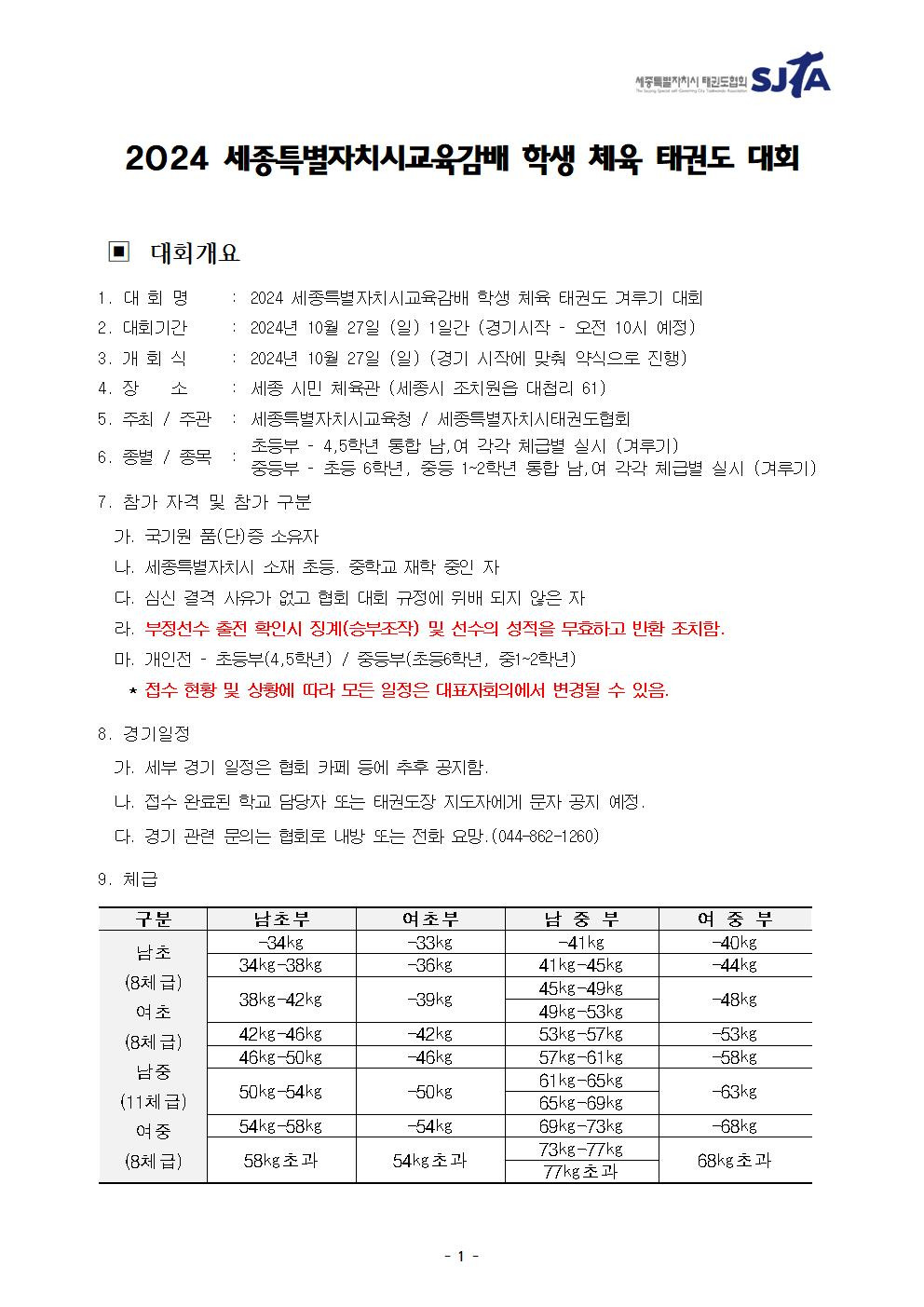 2024 세종시교육감배 학생체육 태권도 대회(겨루기)