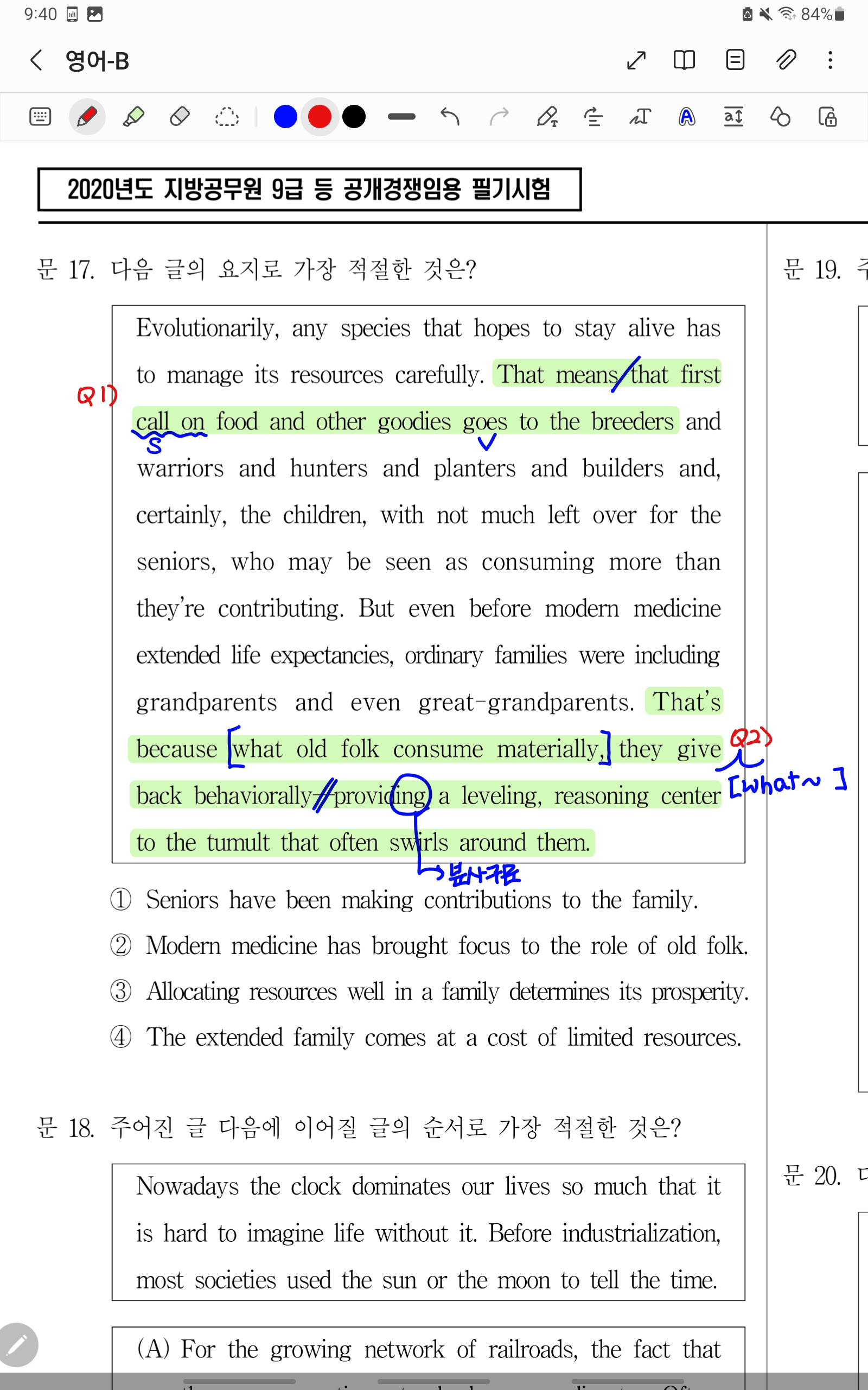 안녕하세요, 2020 지방직 9급 기출 독해 지문 관련하여 질문이 있습니다.