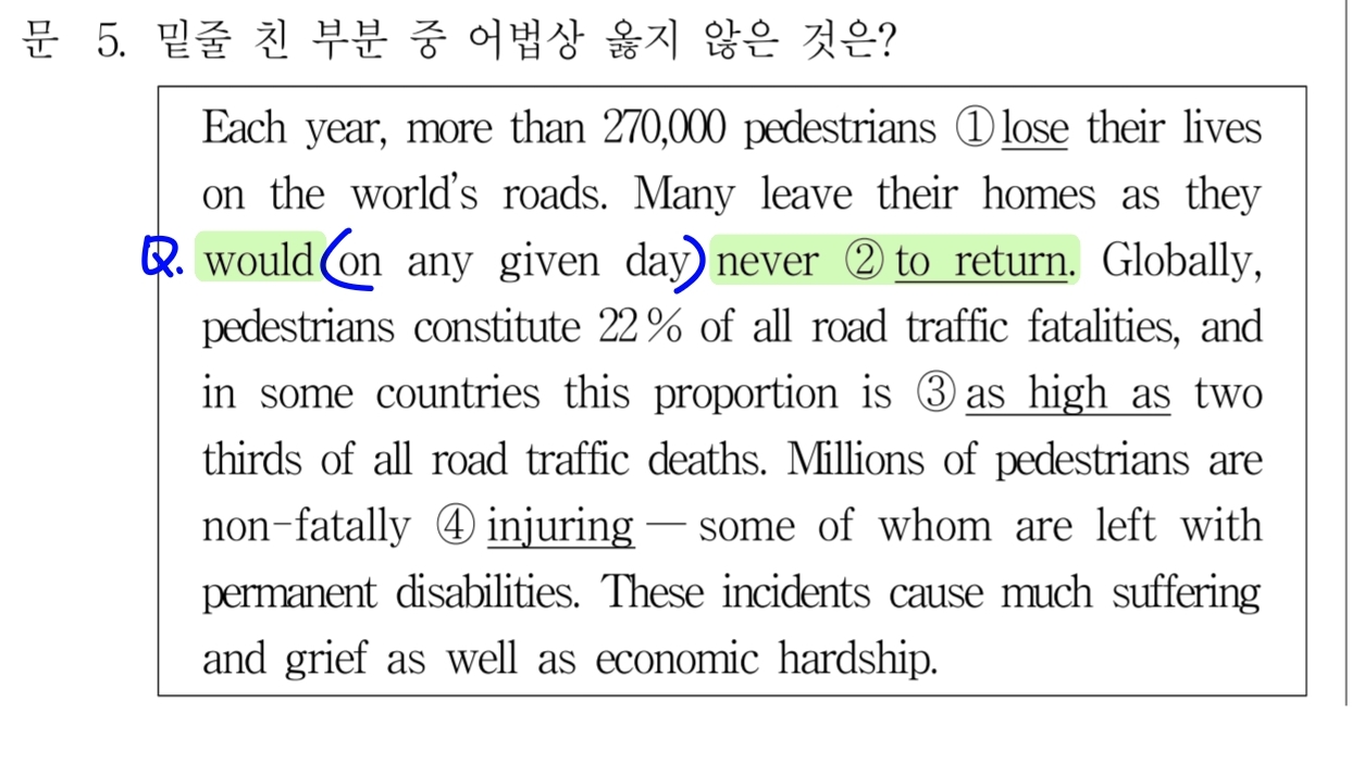 would 뒤에는 당연히 동사원형이 와야 되니까 2번을 틀린걸로 정답을 찍었는데 틀렸네요,,