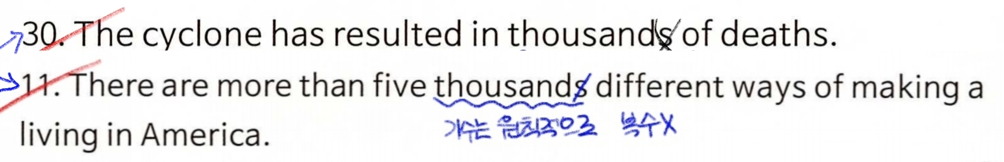 밑에 지문은 기수는 s가 안 붙는것은 알고 있는데요, 위에 지문은 왜 s가 붙을 수 있는 건가요..??