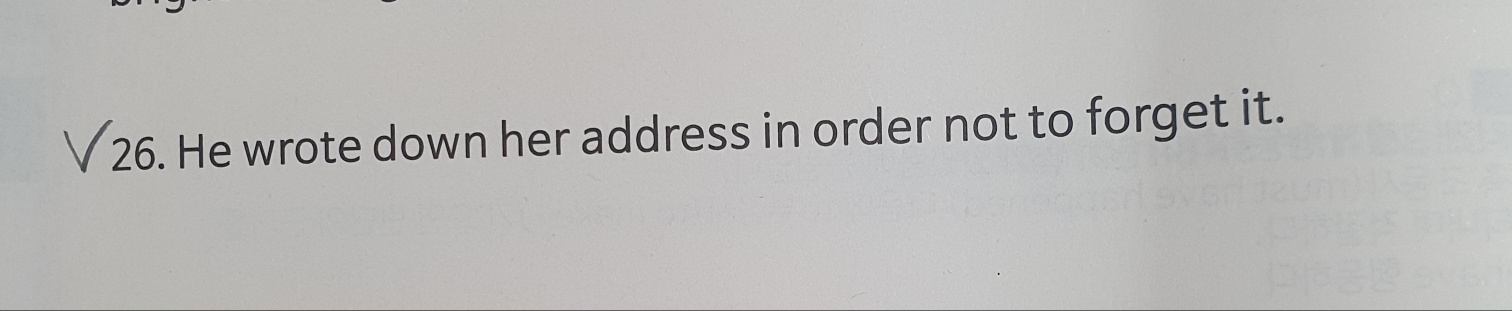 그는 그녀의 주소를 적었다 / 그것을 잊지 않으려고