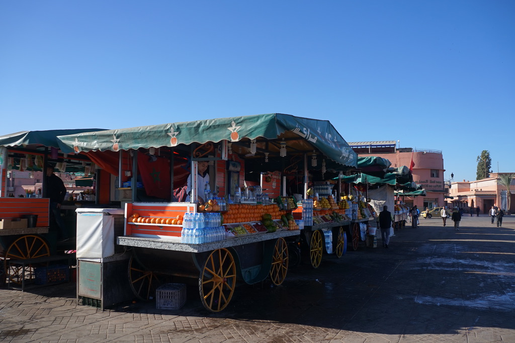 광장 중앙에는 관광객들에게 그 자리에서 과일주스를 만들어주는 가게들이 있는데 이 가게에서는