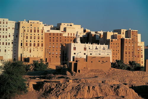 요새화된 성곽에 둘러싸인 16세기 도시 시밤(Shibam)은 연직(鉛直) 시공 원리를 토대로 한 도시 계획을 보여주는 가장 오래되고 우수한 사례이다. 웅장한 탑과 같이 절벽 위로 솟은 듯한 구조의 건축물들로 이루어진 시밤은 ‘사막의 맨해튼’이라고도 불린다.