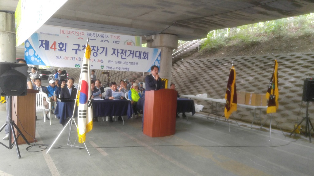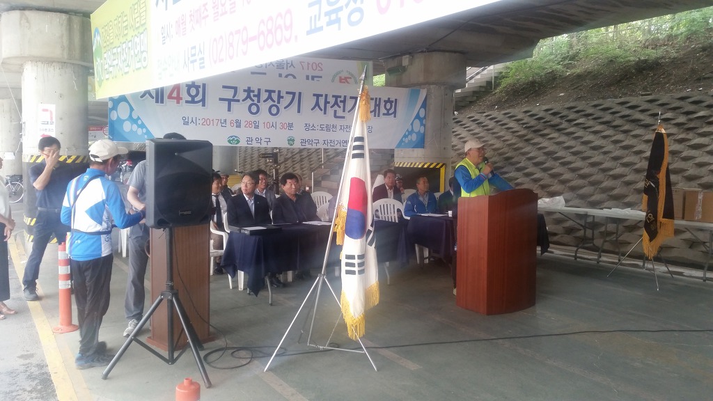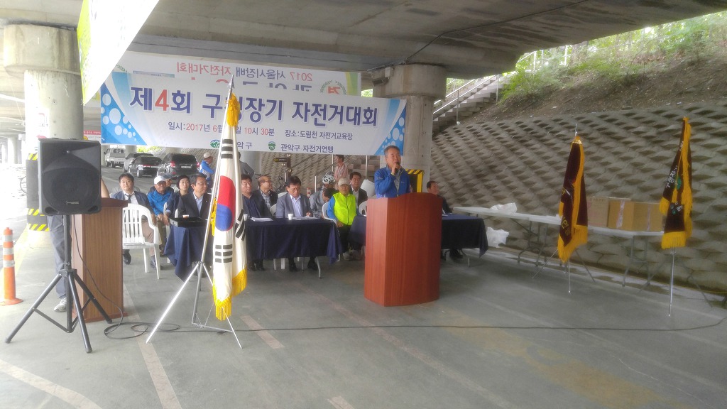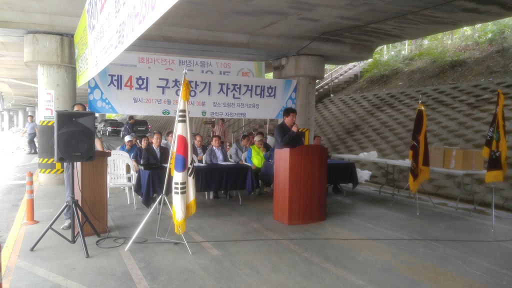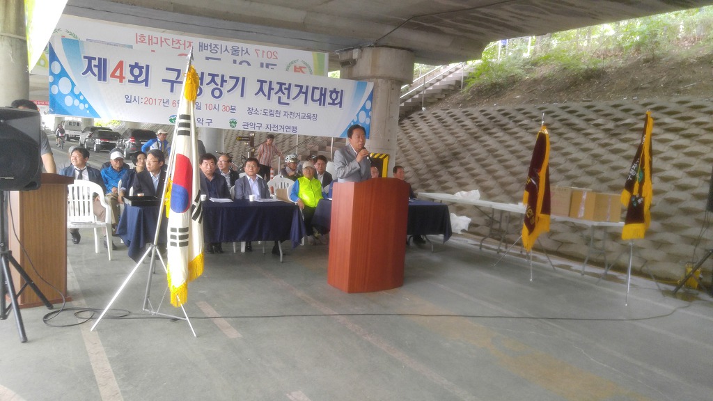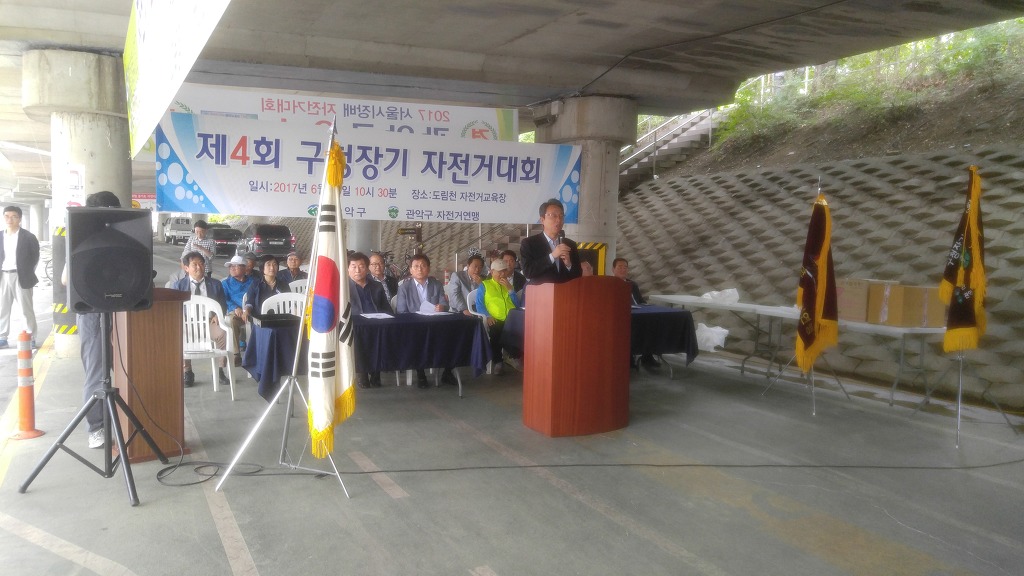 제4회 구청장기 자전거대회 개최 관악구자전거연맹 주관으로 보라매공원도림천에서 출발하여 도림천신정교까지 퍼레이드를하였다 제4회 구청장기 자전거대회가 2017년 06월 28일(수) 오전 10시 보라매공원도림천에서 내빈들과 동호인들이 참석한 가운데 개최되었다. |