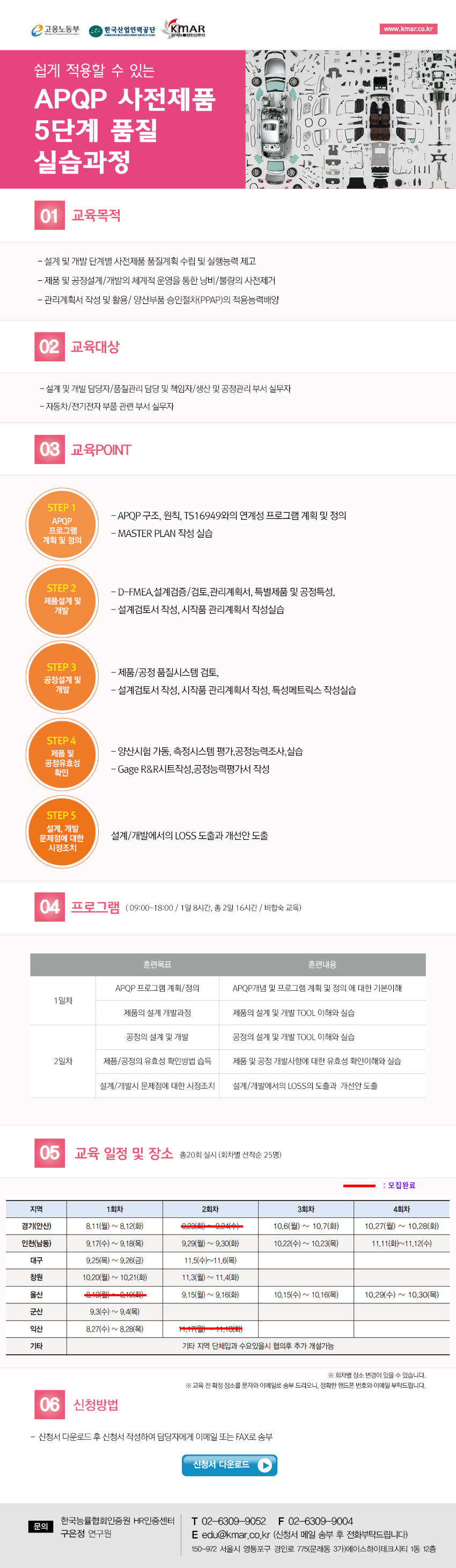 APQP사전제품 5단계 품질 실습과정 교육 프로그램입니다. 작성자한국품질협회인증원(김태화)|작성시간14.08.06|조회수38 목록 댓글 0 글자크기 작게가 글자크기 크게가 다음검색 현재 게시글 추가 기능 열기 북마크 공유하기 신고 센터로 신고 댓글 댓글 0 댓글쓰기 답글쓰기 댓글 리스트