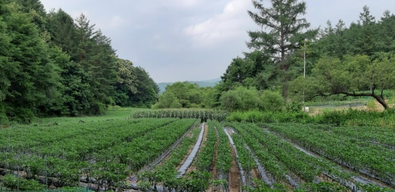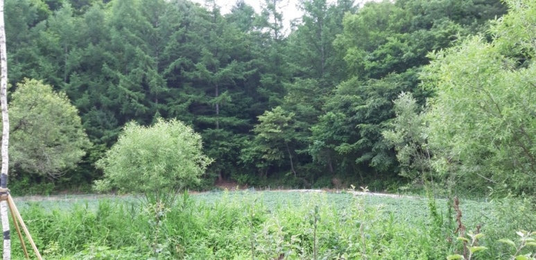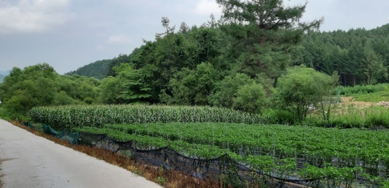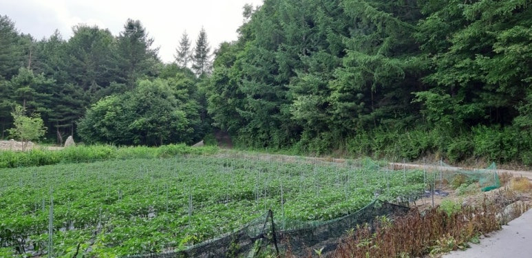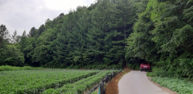 봉평 시내에서 단 5분인데, 막다른 길 끝에 딱 이런 땅이 숨어 있습니다.