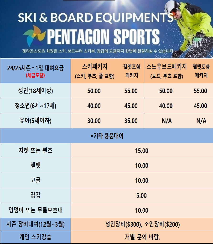 [스키장과 동일한 수준 또는 퍼포먼스 장비를 최대 50% 할인된 요금으로 렌탈]