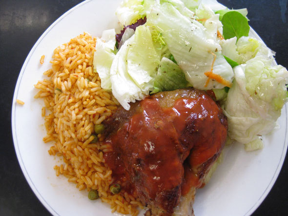 보시다시피 포르투칼 스타일 전기구이 통닭입니다. 한마리(Whole Chicken)$10 씩 사도 좋지만, 저 찐밥과 감자(꼭 Tomato potato!)와 곁들여 먹는 Half Chicken Dinner $8.99 가 저는 더 좋더군요. 한마디로 푸짐하면서도 쫄깃쫄깃한 닭고기맛이 일품입니다. 제경험으론 TakeOut 할 경우 양이 더 좋은 것 같습니다^^