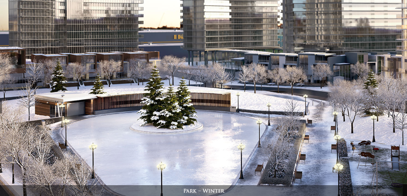 킹스랜딩 콘도 바로 앞에 생길 공원에 조그만 폰드가 겨울에는 아이스 링크로 이용될 예정입니다.