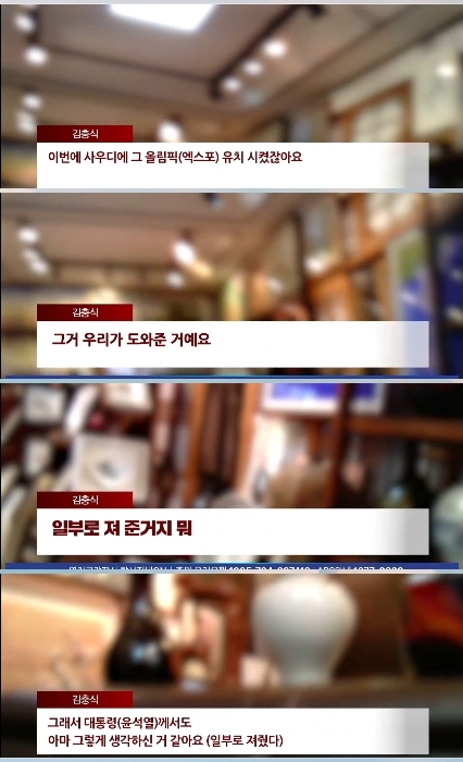 | 578억이라는 천문학적인 해외 순방비를 펑펑 쓰면서 김건희 욕심 채우려고 다녔나? 최은순의 내연남 김충식의 발언에 의하면 사우디아라비아에 엑스포 유치작업은 일부로 양보해 주고 그대가로 김건희일가에게 커미션을 받았다고 했는데 아래 글과 사진에서 확인해 보세요. 제발 속 시원하게 엑스포 양보한 내막을 국민들은 알고 싶습니다. 진짜 최은순 내연남 김충식(윤석열장인)에게 정부에서 파주땅 8.000평을 줬나? 부산 엑스포를 일부러 넘겨준 일당들 그에 대한 사우디 네옴 프로젝트 건설 오다에 커미션을 챙기려고 국가 반역을 저지른 자들! 한 국가를 자기들 이득에만 사용한 권력 역사이래 최고의 사기꾼으로 둔갑하는 현직 대통령 일가! 이제 내려오라가 아닌 법에 의한 죽음을 기다리라! 윤석열 지지하시는분들도 맹목적인 지지보다 양심을 되찾으시기 바랍니다. 이렇게 국민을 속여야 합니까? 대통령이 국민의 민생고보다 사리사욕으로 국정을 운용해서야 되겠습니까? 이명박의 사자방비리로 189조원 횡령보다 더 무섭네요. 민주당 국회의원들 다 무엇하고 있습니까? 열린공감이 만든 탐사저널ON에서 보도한 내용이 사실인지 가짜 뉴스인지 확인좀 해주세요. 만약 사실이면 法대로 윤석열을 고발해주세요. 윤석열대통령 지지하는분들 https://www.youtube.com/live/uPQgs3Js_zo?si=8J_S1BPb6mgAdtIB 이 동영상이 가짜 뉴스라면 고발하여 엄벌에 처하여 주십시요. 북한보다 더 국가를 전복시키려는 무서운 세력입니다. 간첩보다 더 무서운 놈들입니다. 열린공감이 만든 탐사저널ON에서 어제 대박 특종을 했습니다. https://www.youtube.com/live/uPQgs3Js_zo?si=8J_S1BPb6mgAdtIB 바로 김충식에 관한 내용이구요 김충식은 최은순(윤석열 장모) 와 내연관계로 알려진 분입니다. 김충식의 충, 최은순의 은 충은 사업의 등기부 등본을 떼보니 김충식과 최은순의 주소가 같고 둘이 함께 부동산 투기도 많이 했다죠 그리고 김충식은 사업가 겸 법조 브로커로도 알려진 인물이라네요. 김충식의 딸이 정대택 씨에게 증언한 내용을 보면 (소송 증거로 쓰임) 아버지(김충식)는 한국사회에 인맥이 좋은편, 윗선과 손이 잘닿는 편이며 판검사 등에 향응을 제공 하고 두루두루 도움을 많이 받았는데, 아버지가 정대택과의 소송에서 기적이 일어났다며 재판 담당판사가 자신과 친분이 두터운 사이라 자신을 쳐다보며 눈짓으로 안심 시켰다고 말 했대요. 탐사저널ON 에서는 앞으로 매주 월요일마다 10부작으로 6개월 전부터 준비한 김충식 국정농단에 관한 탐사취재 보도를 하겠다며 예고한 바 있는데요 오늘 첫 1화를 시작했습니다. 긴가 민가 하면서 봤는데..정치인 포함 여러 인물들이 등장하는데 헷갈려서 일단 패스하고 영상 뒷부분 사우디에 관한 내용만 우선 가져왔는데요 이권 청탁에 관한 거구요 요약하면 사우디 사업과 관련하여 사우디 왕가와 친분 있는 브로커 박 모씨는 한국에 오면 늘 먼저 김충식 사무실부터 들린 다고 하며 김충식은 브로커 박 모 씨를 통해 사우디와 한국 기업을 연결해 주고 커미션을 챙긴다는 제보 였습니다. 최근 사우디 담수청장 일행은 대규모 담수화 프로젝트 협의차 방한 했었습니다. https://m.newsprime.co.kr/section_view.html?no=613709 기사 내용을 보면 이번에 방한한 SWCC 일행은 청장을 비롯해 주지사, 부지사가 이끄는 고위급 대표단 16명이다. SWCC 최고층 일행은 방한 기간 동안 한국의 ㈜서화엔지니어링, 현대건설, POSCO E&C, LG화학, DL E&C(CARBONCO), KCC, 삼부토건, 우림, 태경BK, 파인아시아자산운용(주) 등 담수화 관련 기업들과 긴밀한 협의를 위한 회의 및 공장 순회를 진행했다. 라고 되어 있습니다. 오늘 보도의 핵심은 김충식이 직접 본인의 입으로 떠드는 내용과 김충식 사무실에 있는 삼부토건과 사우디아라비아 사업 약정서에 관한 건데요. (라마다르네상스로 유명한 그 삼부토건) 김충식은 사우디와의 사업 때문에 엑스포를 일부러 져줬다고 말하며 여러 기업들에게 매일 같이 전화 온다 고도 했습니다. 이게 만약 사실이라면 최은순 동거남 김충식이 수수료를 챙기며 사우디와 한국 기업을 이어주는 역할을 하고 있다는 건데요. 이권을 챙기고 있었군요. 추가 증거가 더 있는지 후속 보도를 지켜봐야 겠어요. 매주 월요일 10부작이라네요 참고로 저는 뒷부분만 간략하게 요약한거라 직접 전체 영상 보시는것도 좋을거 같아요. 제가 놓친 것들이 많을 거예요. |