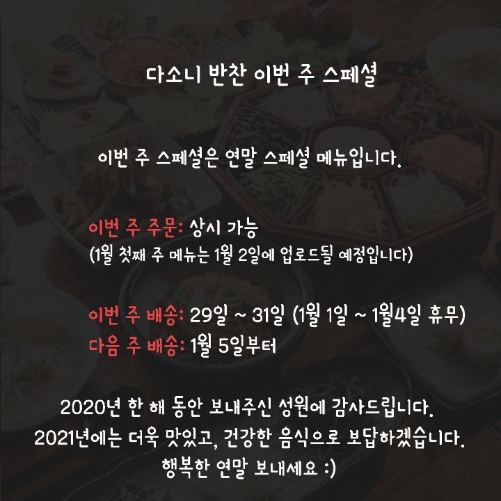 1월 첫주 주문은 1월 2일부터 가능합니다.