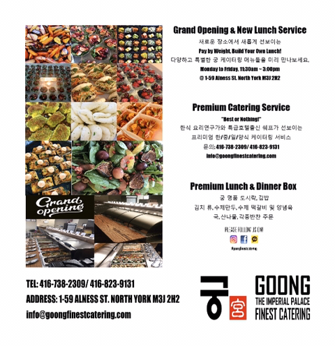 GOONG FINEST CATERING 작성자GOONG FINEST CATERING|작성시간20.03.16|조회수1,444 목록 댓글 0 글자크기 작게가 글자크기 크게가 GRAND OPEN & NEW LUNCH SERVICE!! 다음검색 현재 게시글 추가 기능 열기 북마크 공유하기 신고 센터로 신고 댓글 댓글 0 댓글쓰기 답글쓰기 댓글 리스트
