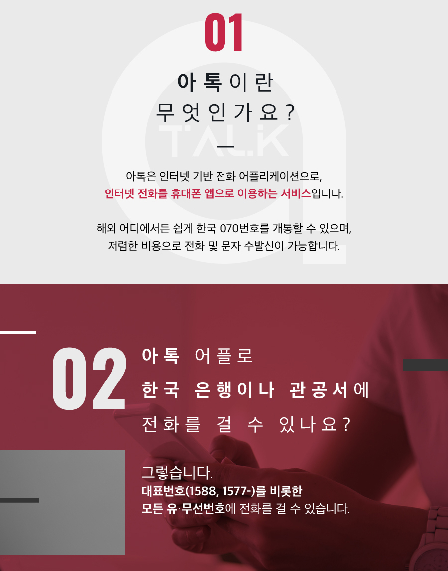 (아톡 070번호는 한국 인터넷 전화번호이므로, 한국에 있는 발신자는 '국내요금'으로 통화 가능합니다.)