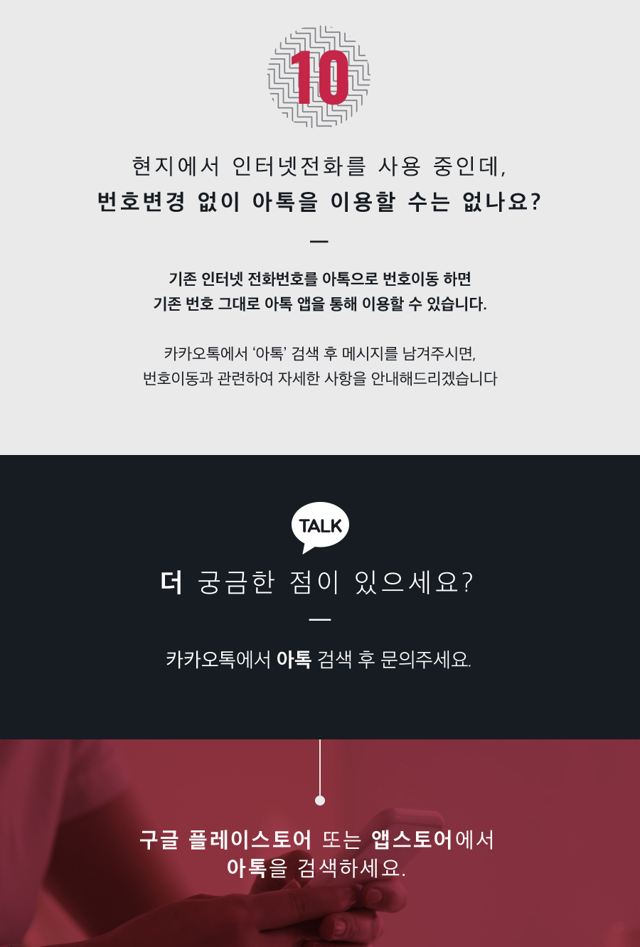 2. 한국에 있는 가족·지인에게 아톡 번호를 알려주면 전화를 받을 수 있어요.