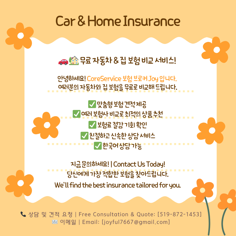 이런 내용들만 잘 챙기면, 캐나다 자동차 보험 똑똑하게 가입하고 아낄 수 있어요! 😊