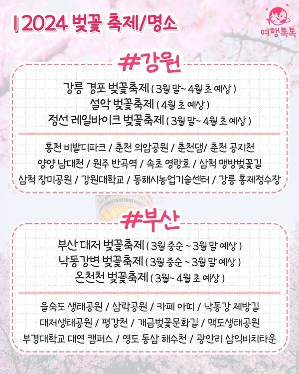 2-2. 2024 강원, 부산 벚꽃 축제 및 벚꽃 명소