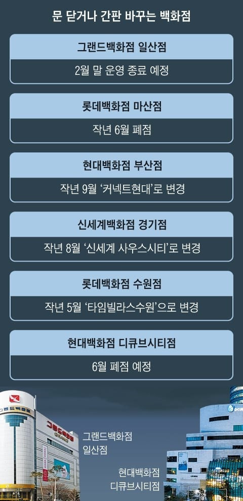 → 지난해 롯데·신세계·현대·갤러리아·AK 등 5대 백화점의 전국 68개 점포 중 6할이 넘는 45 곳이 역성장.