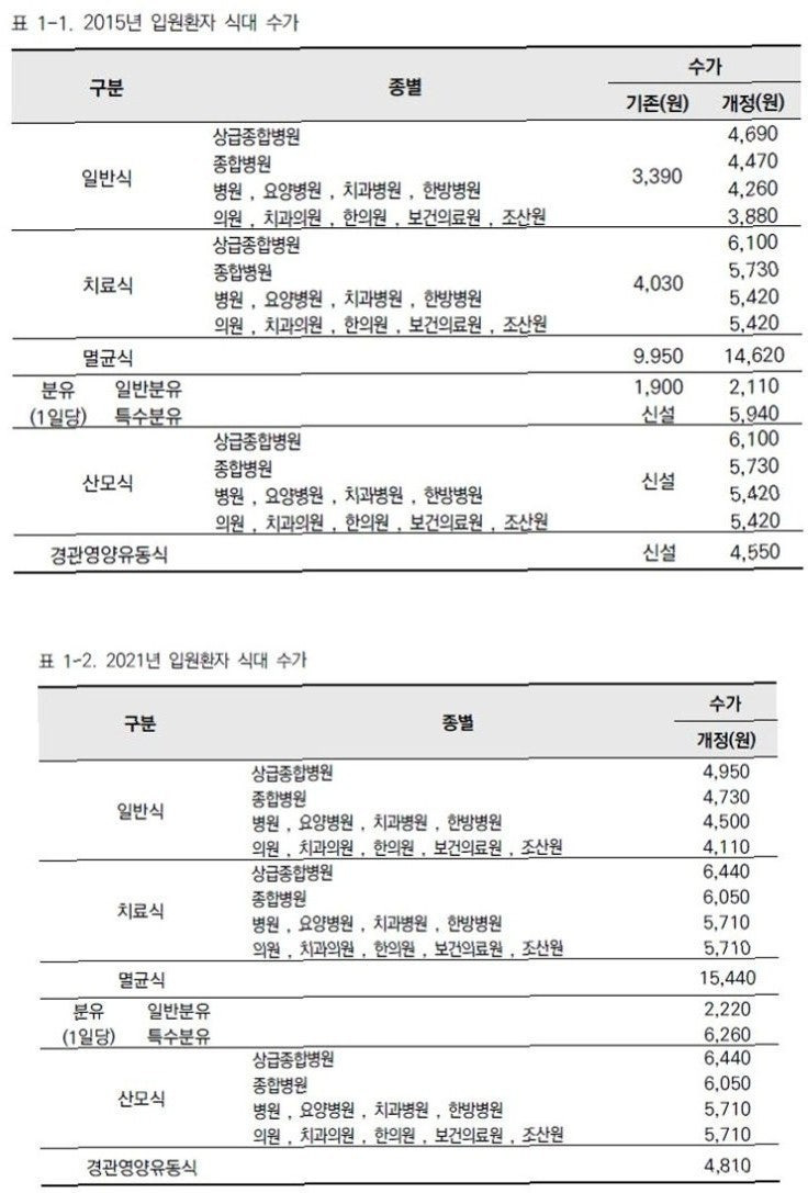 → 환자 식대는 보건복지부가 물가지수를 반영해 정하는데 올해는 5530원(상급 종합 병원 기준)이다.